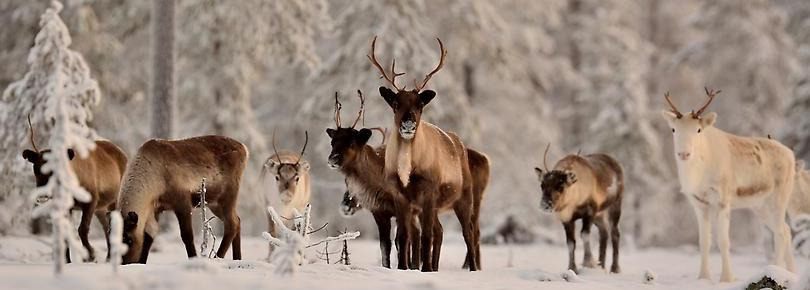 Ibland är det svårt att undvika att renar kommer upp på trafikerade vägar. Anpassa därför hastigheten, särskilt vintertid!