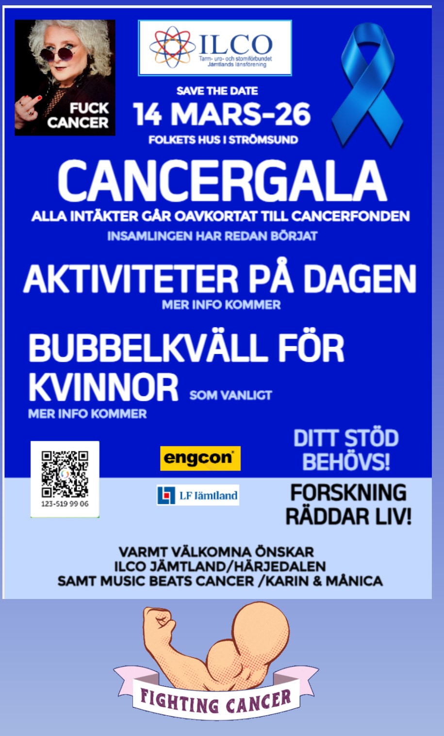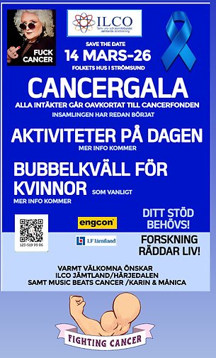ILCO Jämtland/Härjedalen och Music Beats Cancer bjuder in till stor cancergala på Strömsunds Folkets hus.