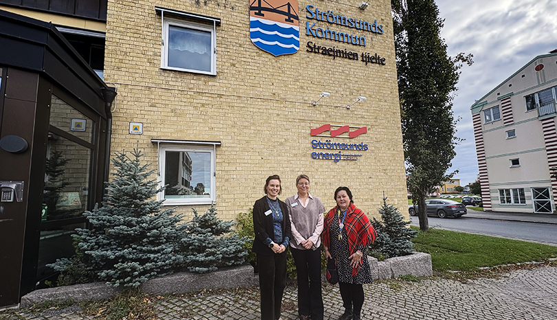 Veronica Labba och Ellen Omma från Sametinget tillsammans med kommunens samiska samordnare Aanna Johansson Larsson under besöket i Strömsund.