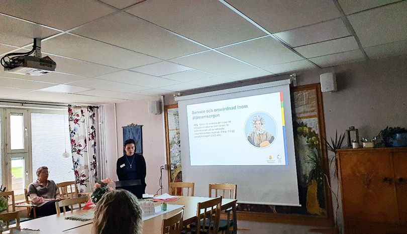 Presentation av service och omvårdnad inom äldreomsorgen under besöket på Granbackens särskilda boende.