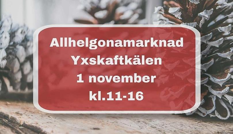 Allhelgonamarknad i Yxskaftkälen med ett 15-tal utställare. Här finns konst, hantverk och mathanverk m.m.
