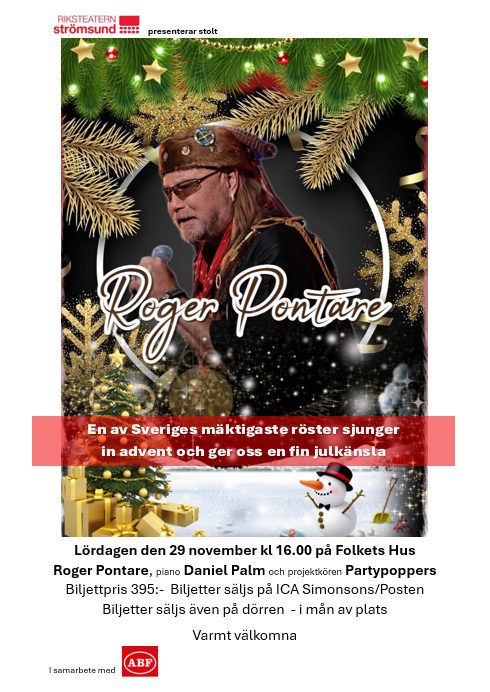 Riksteatern Strömsund bjuder in till Julkonsert med Roger Pontare.