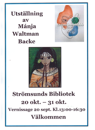 Mellan den 20 och 31 oktober är det utställning på biblioteket i Strömsund av Manja Waltman Backe.