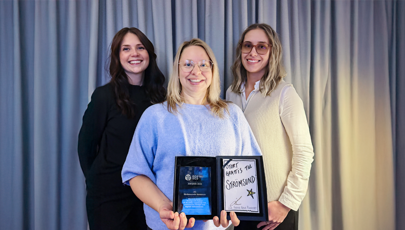 Emelie Matsdotter, Gunilla Andersson och Julia Wåhlstedt är några av de socialsekreterare som dagligen använder SES i sitt arbete. Här håller de upp utmärkelsen från SES Family Awards 2025.
