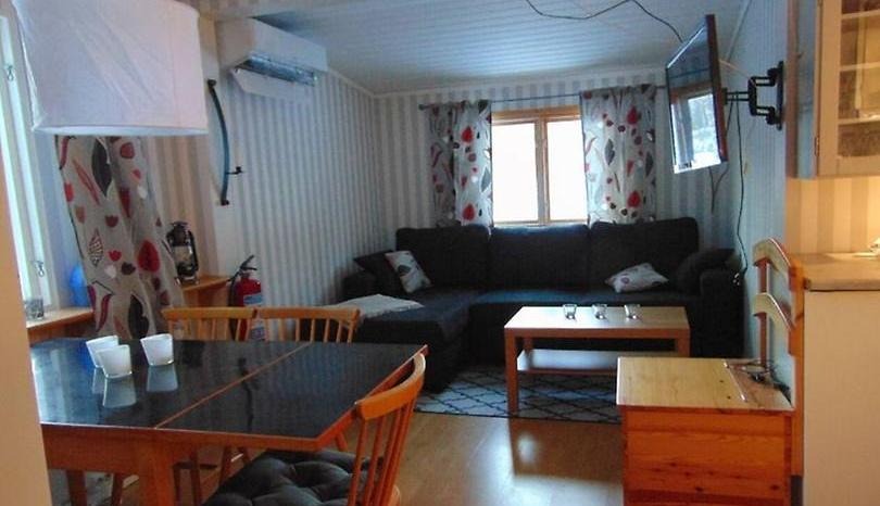Rymligt kök med både elspis samt vedspis för mysiga kvällar med sprakande eld! (ved ingår i hyran). Badrum med handfat, dusch och miljövänlig separett toalett. Sänglinne och handdukar ingår.