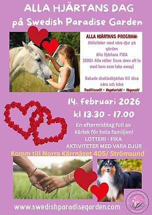 Fira Alla hjärtans dag på Swedish Paradise Garden med djur, fika och kärlek – lördagen 14 februari, fri entré!