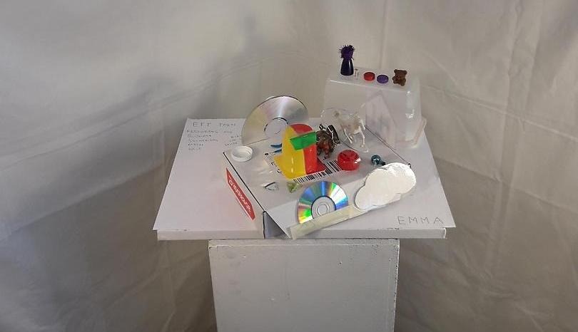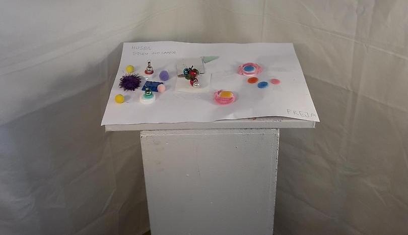 Här kan du se en del av de saker som förskolebarnen skapade i konstprojektet ”Återskapande”.